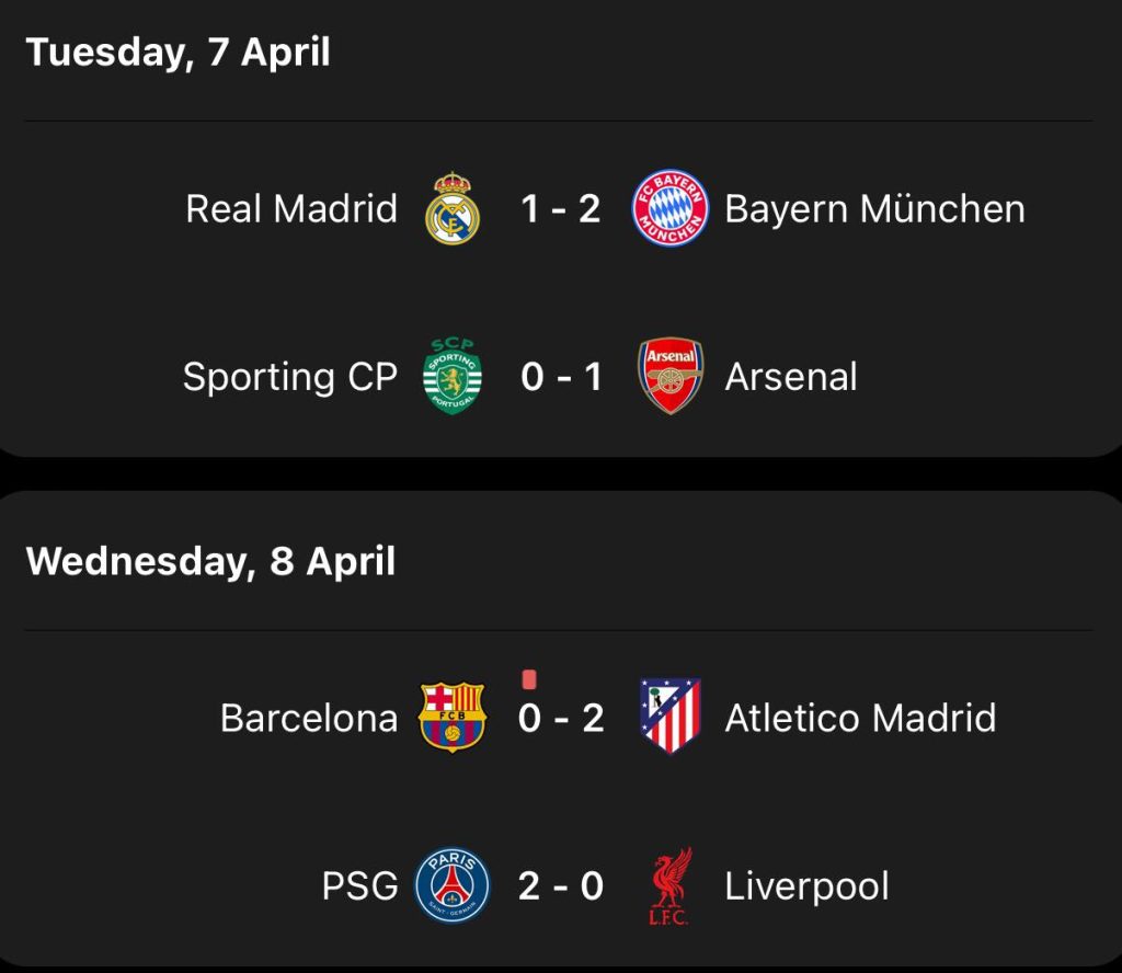 - Real Madrid 1–2 Bayern Munich